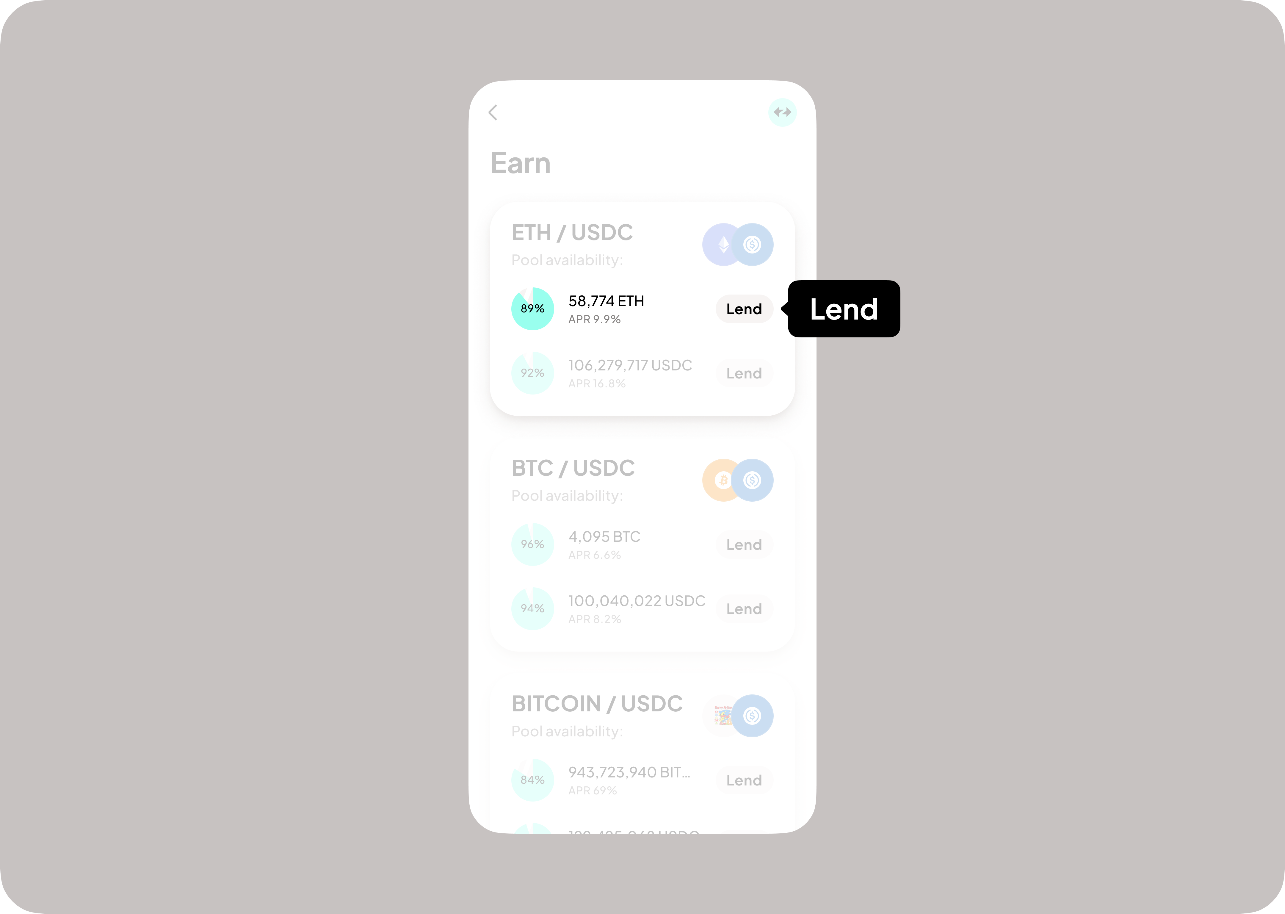 2. Click “lend” on the asset you wish to deposit